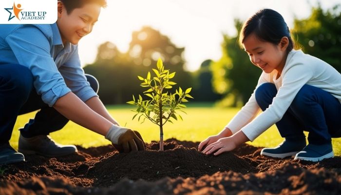 - Làm gương: Trẻ học nhanh nhất từ hành động của ba mẹ. Hãy tiết kiệm năng lượng, phân loại rác và trồng cây cùng trẻ.